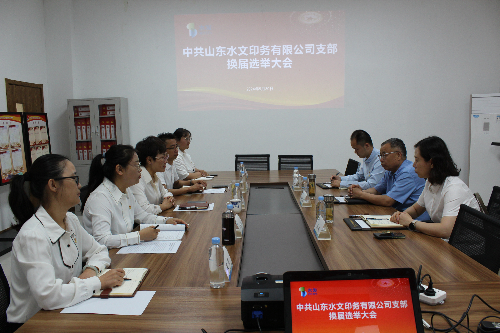 5月30日上午,水文印務(wù)黨支部召開(kāi)黨員大會(huì),進(jìn)行換屆選舉。水發(fā)水控集團(tuán)(籌)黨委副書(shū)記、副董事長(zhǎng)蘆永強(qiáng)、黨群宣傳部部長(zhǎng)張瑾到會(huì)督導(dǎo),公司支部書(shū)記、董事長(zhǎng)張莉主持會(huì)議,全體黨員參會(huì)。