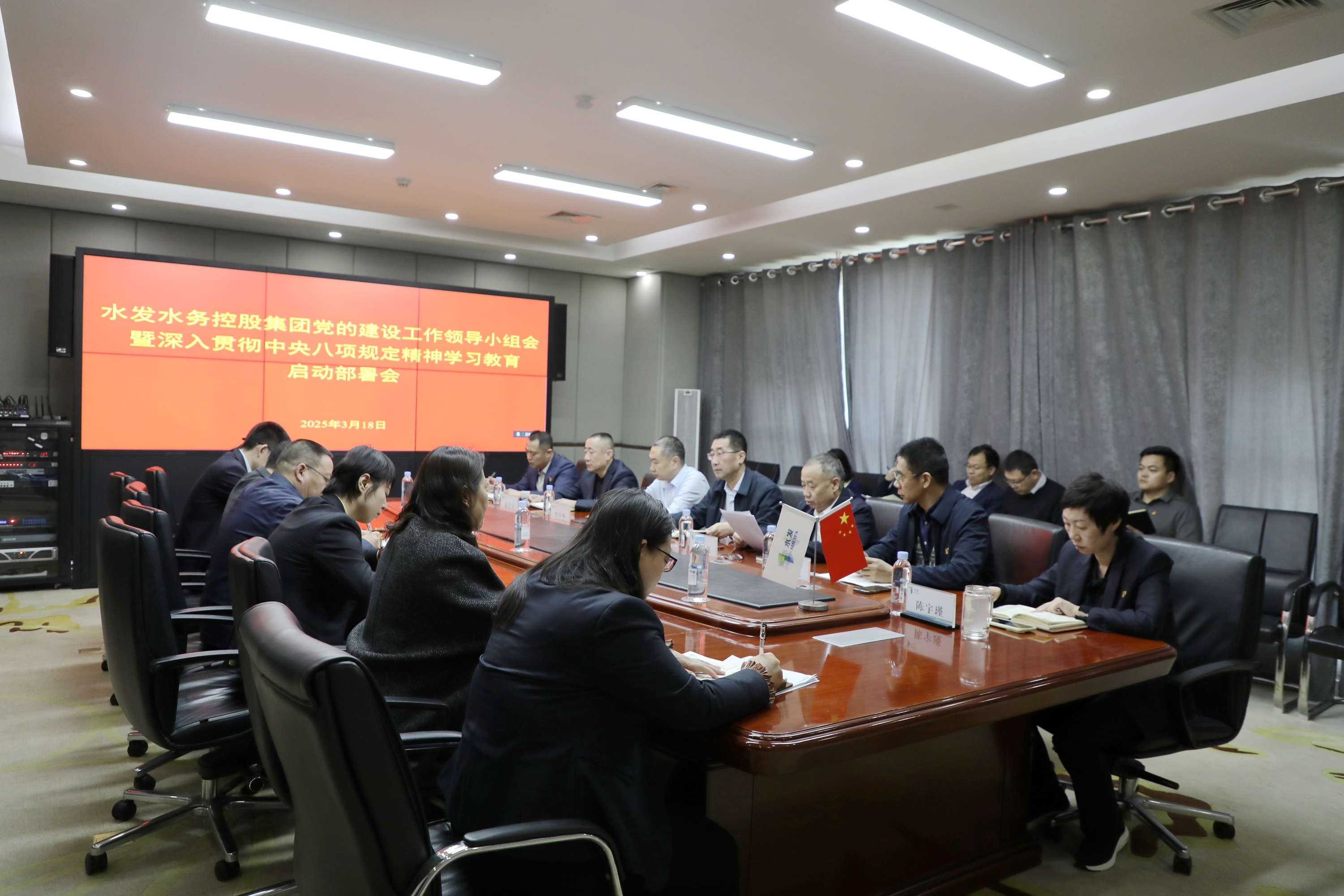會(huì)議傳達(dá)學(xué)習(xí)中央黨的建設(shè)工作領(lǐng)導(dǎo)小組會(huì)議精神和省委常委會(huì)會(huì)議暨省委黨的建設(shè)工作領(lǐng)導(dǎo)小組會(huì)議精神,研究部署、全面啟動(dòng)水發(fā)水控集團(tuán)深入貫徹中央八項(xiàng)規(guī)定精神學(xué)習(xí)教育工作。